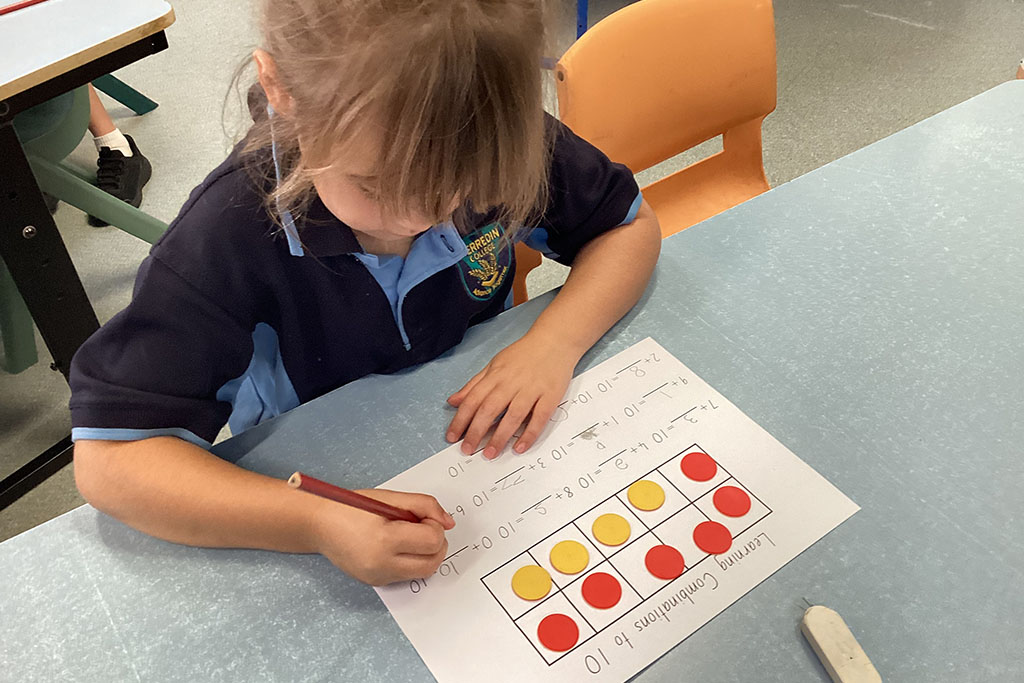 Following this, students move into their Origo Stepping Stones lesson, the mathematics program used at Merredin College. Each week we explore a different mathematical concept through discussions, activities and problem solving. So far this term, students have been learning about teen numbers, place value and addition. Currently, they are exploring the days of the week and how calendars help us organise time.